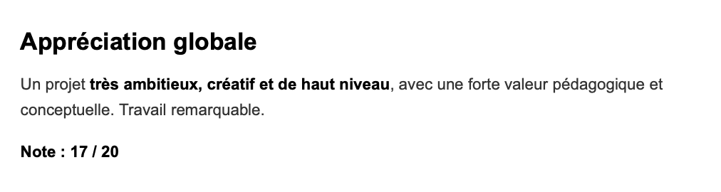 Grade: 17/20 with a distinction “Remarkable Work”.